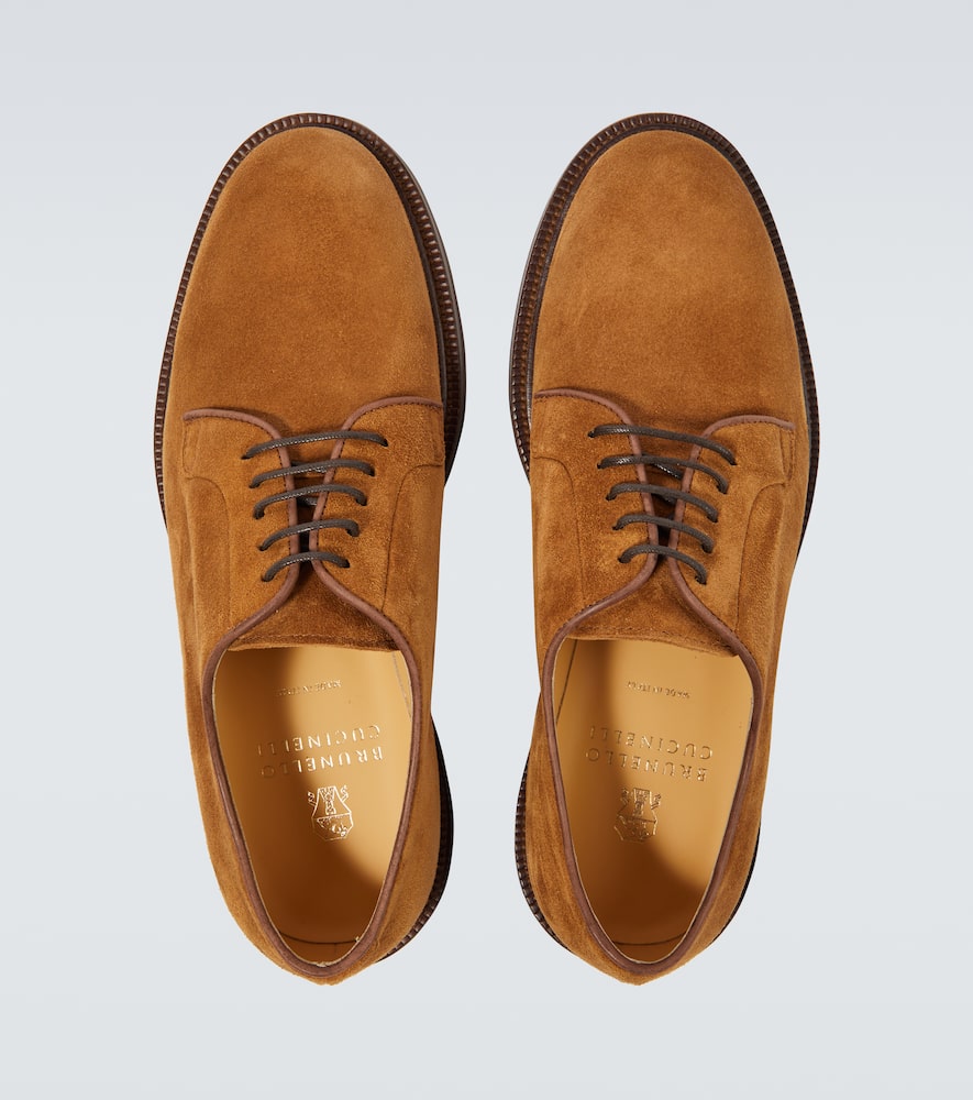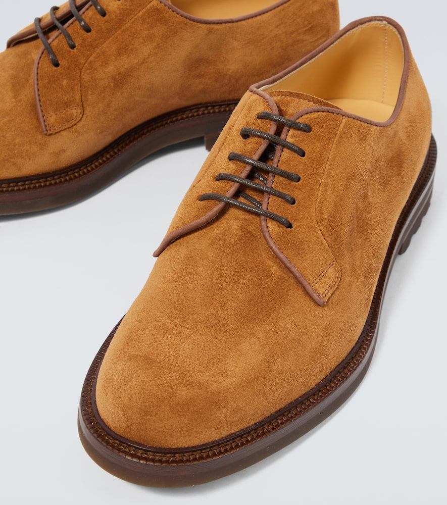 Upper: leather. Lining: leather. Sole: rubber insole and sole. Toe shape: almond toe. Made in Italy. Includes: shoe box, dust bag. Designer color name: Saraceno. Shop Brunello Cucinelli Derby Shoes for men and other designer shoes now.
