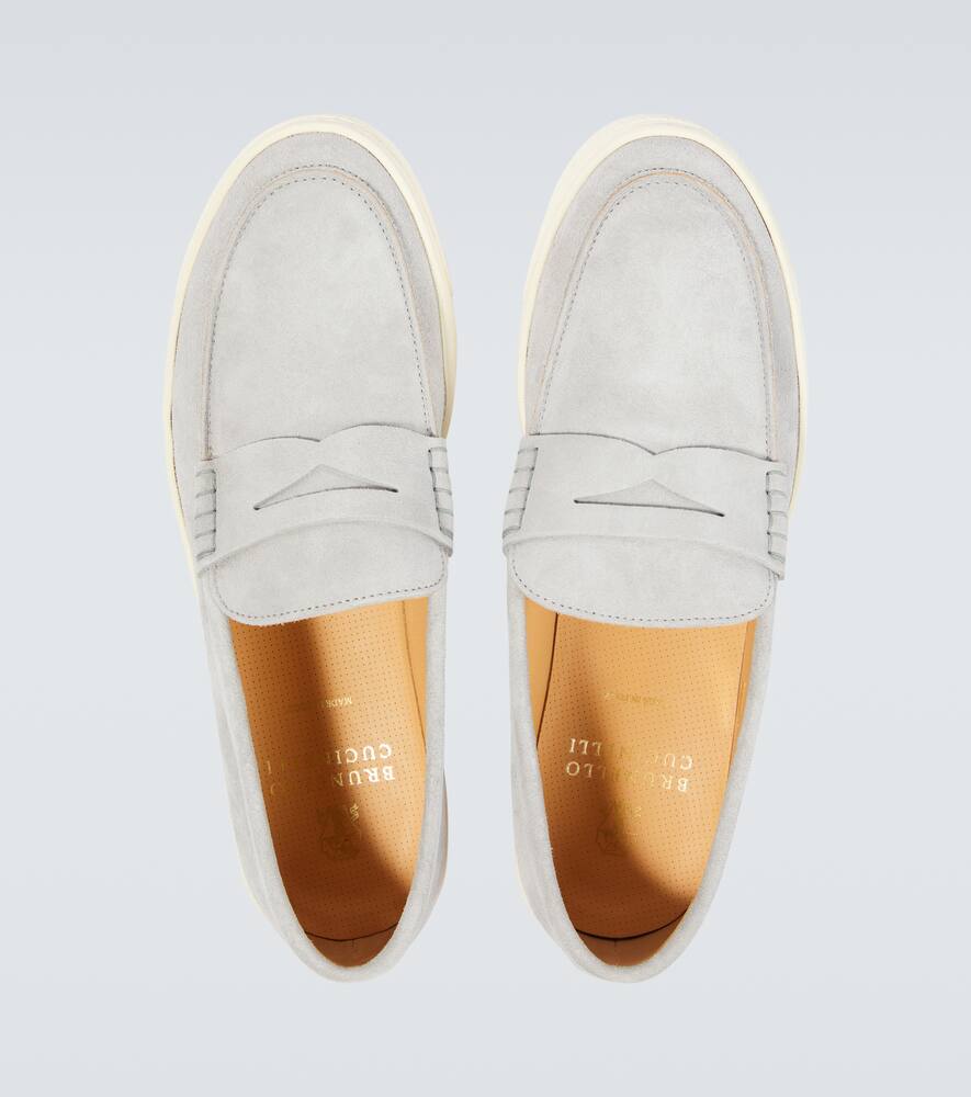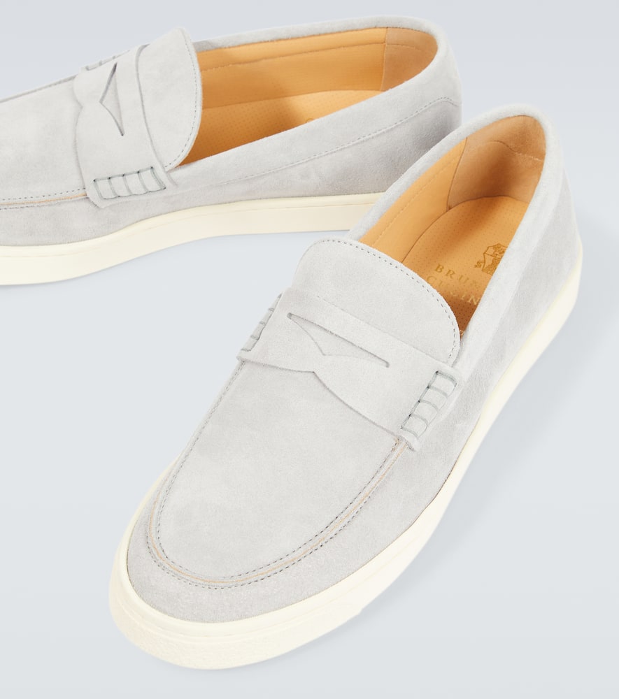 Upper: leather. Lining: leather. Sole: leather insole, rubber sole. Toe shape: almond toe. Made in Italy. Includes: shoe box, dust bags. Designer color name: Boreale. Shop Brunello Cucinelli Loafers for men and other designer shoes now.