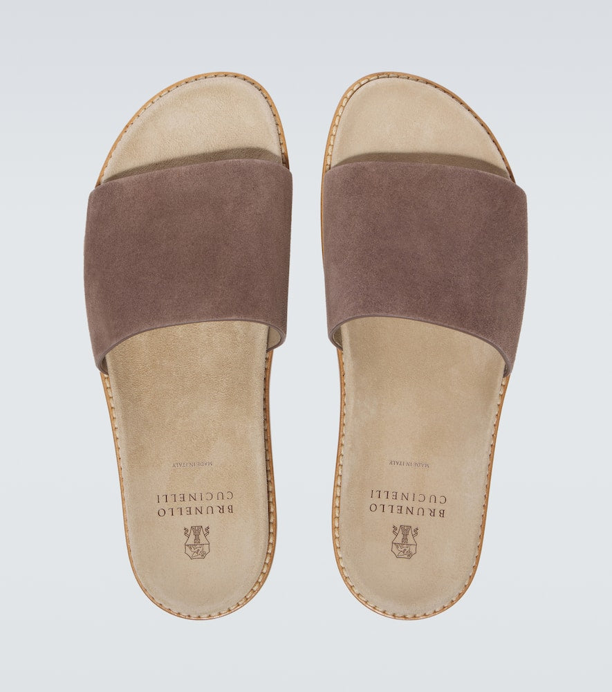 Upper: leather. Lining: leather. Sole: leather insole, rubber sole. Toe shape: almond open toe. Made in Italy. Includes: shoe box, dust bags. Designer color name: Bisonte+Camel. Shop Brunello Cucinelli Sandals & Slides for men and other designer shoes now.