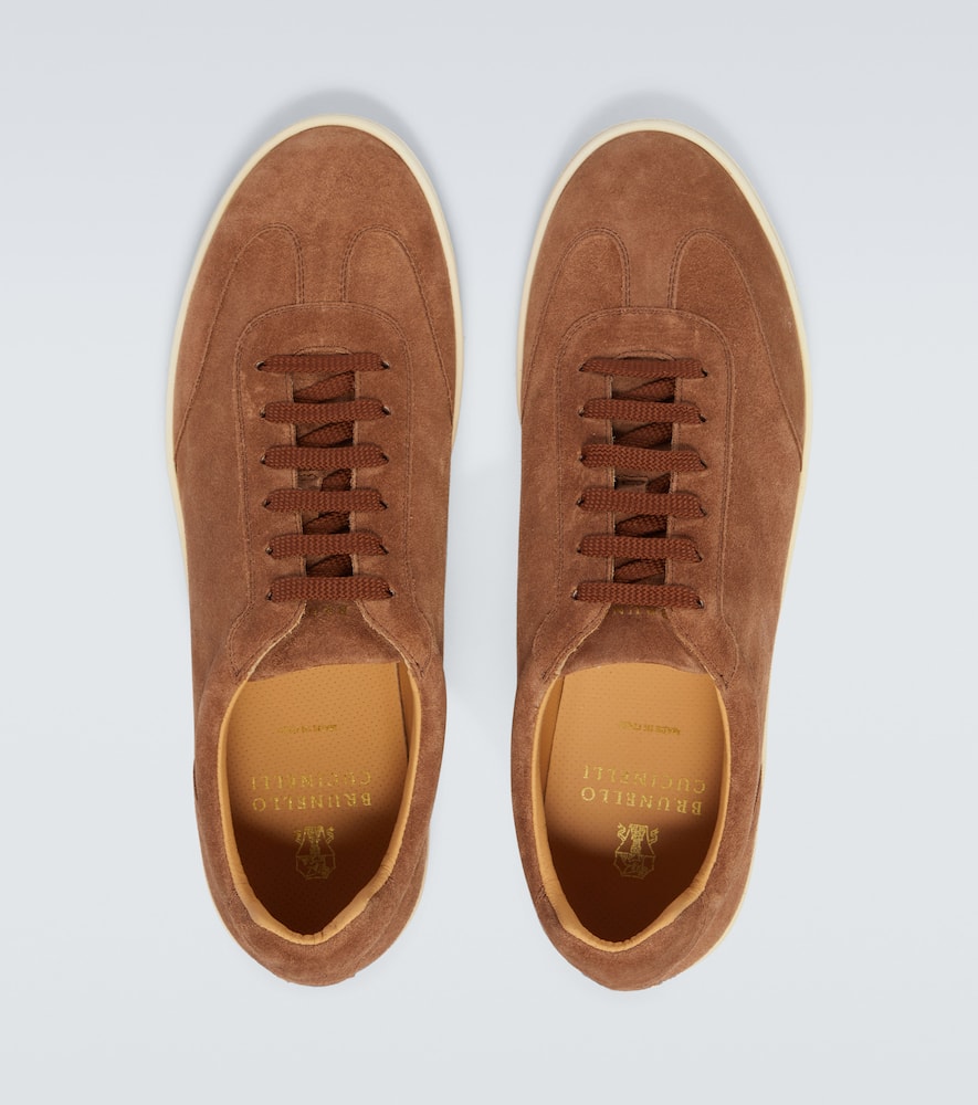 Upper: leather. Lining: leather. Sole: leather insole, rubber sole. Toe shape: almond toe. Made in Italy. Includes: shoe box, dust bag. Designer color name: Nocciola. Closure: lace-up. Shop Brunello Cucinelli Designer Sneakers for men and other designer shoes now.
