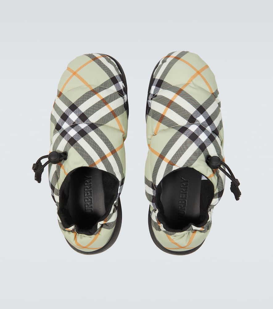 Upper: fabric. Lining: fabric. Sole: leather insole, rubber sole. Toe shape: round toe. Made in Italy. Includes: shoe box, dust bags. Designer color name: Light Sage Ip Check. Shop Burberry Slippers for men and other designer shoes now.