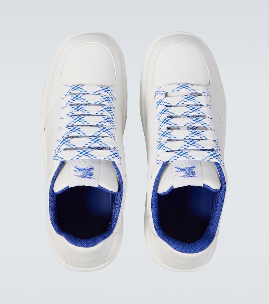 Upper: leather. Lining: leather, fabric. Sole: rubber insole and sole. Toe shape: round toe. Made in Italy. Includes: dust bags, shoe box. Designer color name: White. Shop Burberry Designer Sneakers for men and other designer shoes now.