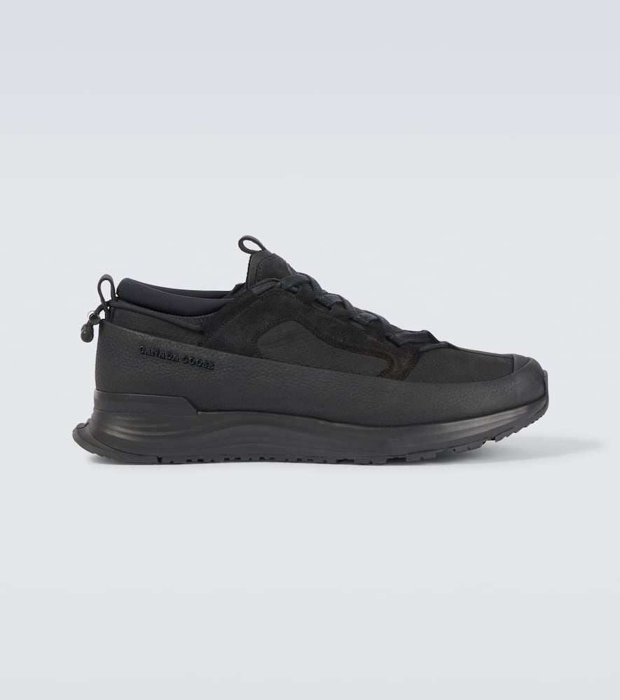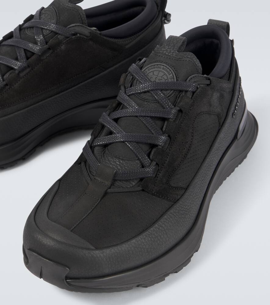 Upper: leather, rubber. Lining: leather. Sole: leather insole, rubber sole. Toe shape: round toe. Made in Portugal. Includes: shoe box, dust bag. Designer color name: Black/Black. Closure: lace-up. Shop Canada Goose Sports Sneakers for men and other designer shoes now.
