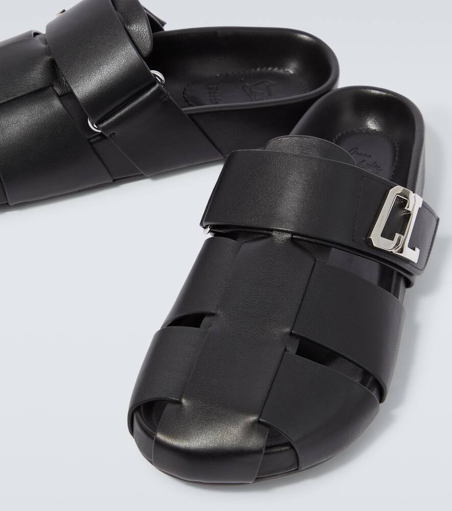 Upper: leather. Lining: leather. Sole: leather insole, rubber sole. Toe shape: square toe. Made in Italy. Includes: dust bags, shoe box. Designer color name: Black. Hardware color: silver. Shop Christian Louboutin Slippers for men and other designer shoes now.