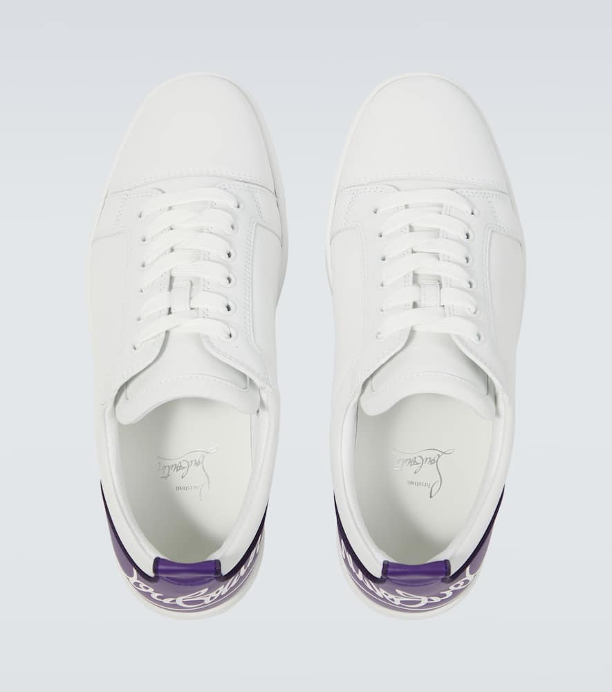 Upper: leather. Lining: leather. Sole: leather insole, rubber sole. Toe shape: round toe. Made in Italy. Includes: extra laces, dust bags, shoe box. Designer color name: White/Jacaranda. Closure: lace-up. Shop Christian Louboutin Low-Top Sneakers for men and other designer shoes now.