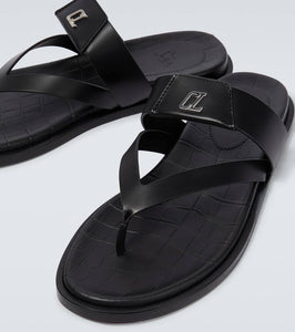 Toe shape: round open toe. Lining: leather. Sole: leather insole and sole. Upper: leather. Comes with dust bags. Designer color name: Black. Comes with a box. Made in Italy. Shop Christian Louboutin Sandals & Slides for men and other designer shoes now.