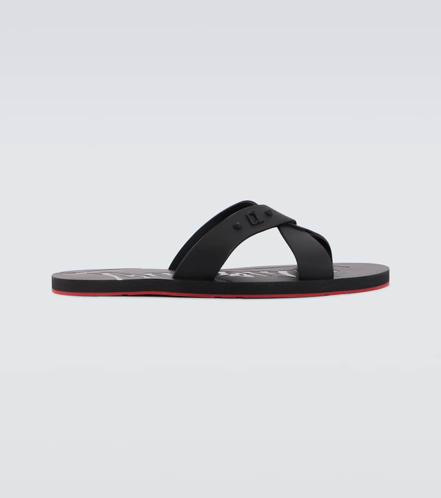 Upper: rubber. Lining: rubber. Sole: rubber insole and sole. Toe shape: round open toe. Made in Italy. Includes: shoe box, dust bags. Designer color name: Black. Shop Christian Louboutin Sandals & Slides for men and other designer shoes now.