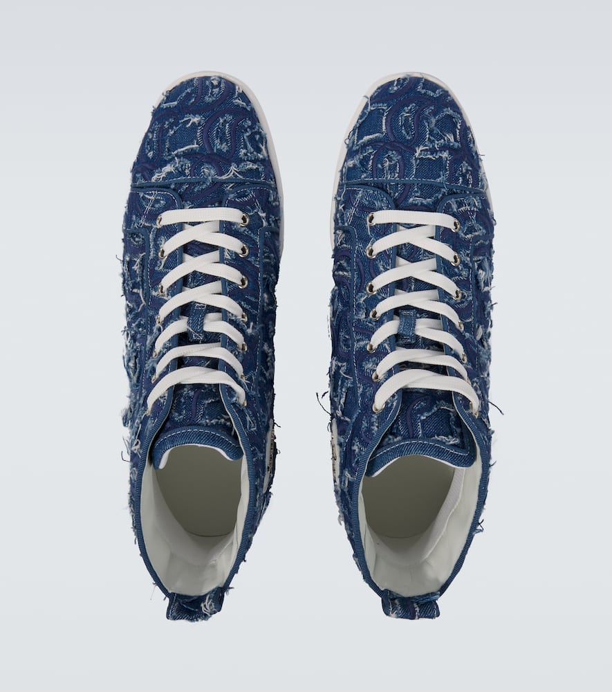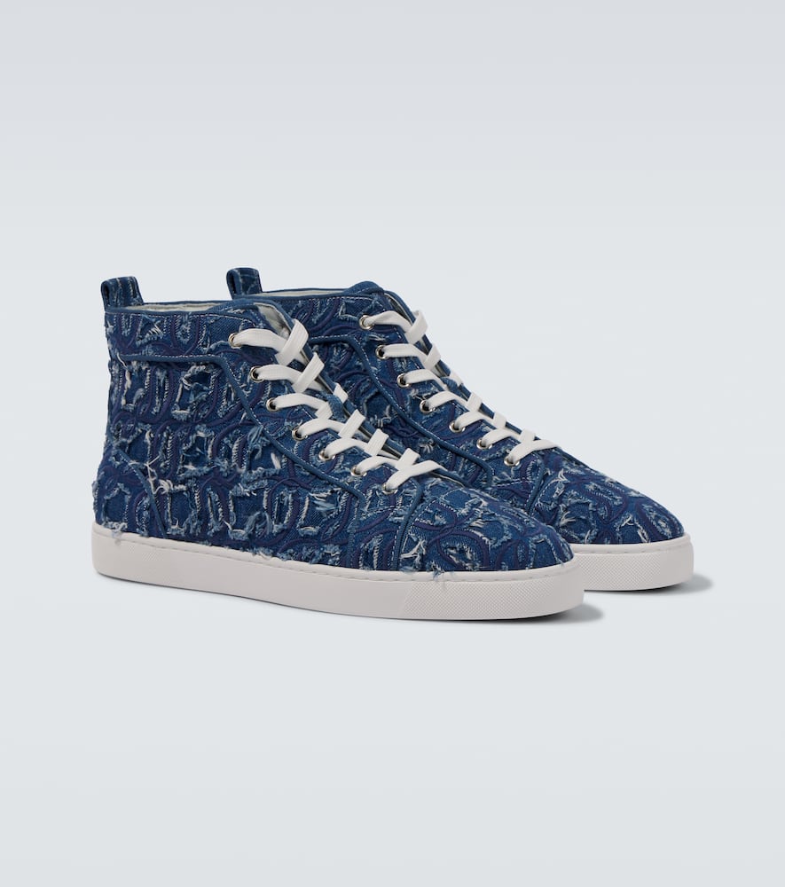Upper: fabric. Lining: leather. Sole: leather insole, signature red leather sole. Toe shape: round toe. Made in Italy. Includes: shoe box, extra laces. Designer color name: Blue. Shop Christian Louboutin High-Top Sneakers for men and other designer shoes now.
