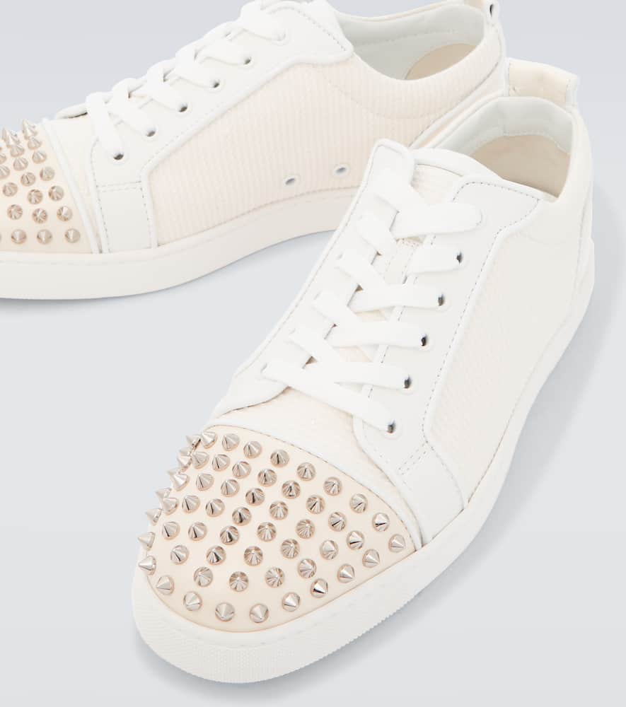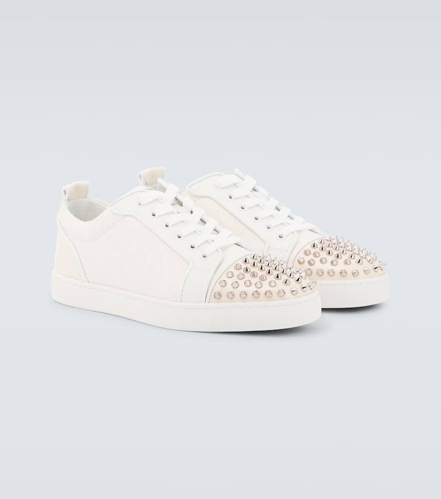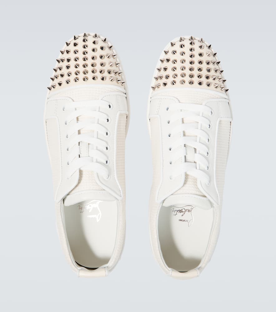 Lining: leather. Sole: leather insole, rubber sole. Toe shape: round toe. Trim: leather. Comes with extra laces. Designer color name: White/Silver. Closure: lace-up. Comes with a box, Comes with dust bags. Made in Italy. Upper: fabric. Shop Christian Louboutin Designer Sneakers for men and other designer shoes now.