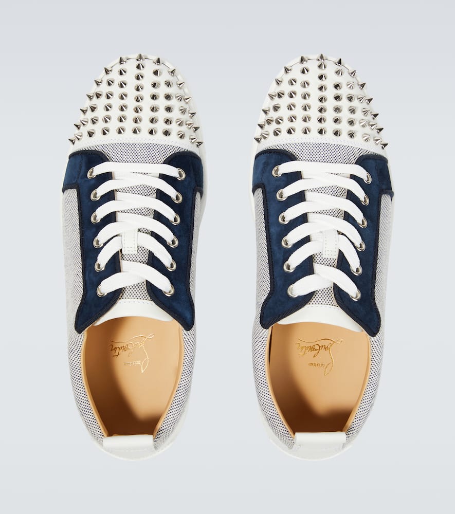 Upper: fabric. Lining: leather. Sole: leather insole, rubber sole. Toe shape: round toe. Made in Italy. Includes: dust bags, extra laces, shoe box. Designer color name: Version Navy. Trim: leather. Closure: lace-up. Hardware color: silver. Shop Christian Louboutin Low-Top Sneakers for men and other designer shoes now.