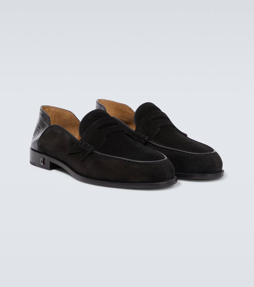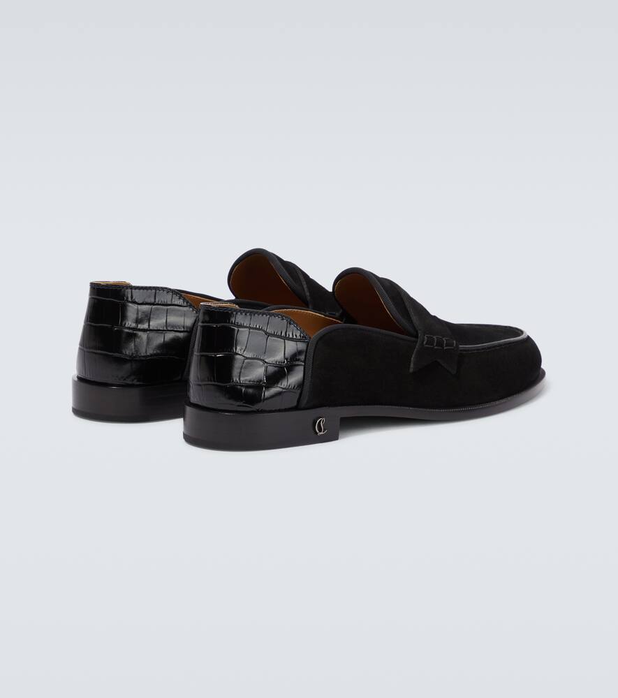 Christian Louboutin Penny No Back suede and croc-effect loafers