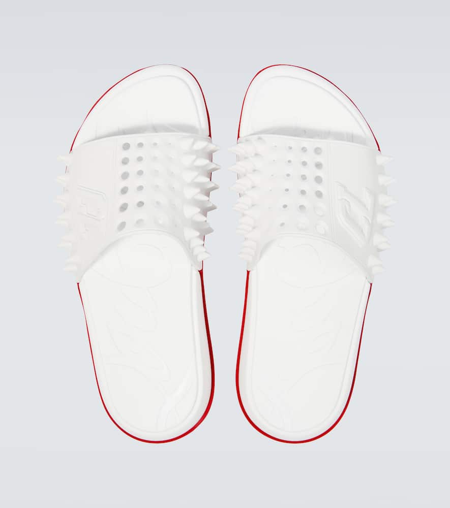 Upper: rubber. Lining: rubber. Sole: rubber insole and sole. Toe shape: round open toe. Made in Italy. Includes: dust bags, shoe box. Designer color name: White. Shop Christian Louboutin Sandals & Slides for men and other designer shoes now.