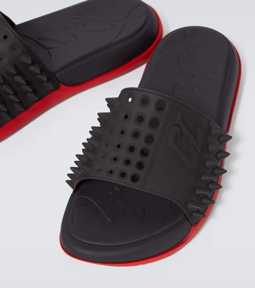 Upper: rubber. Lining: rubber. Sole: rubber insole and sole. Toe shape: round open toe. Made in Italy. Includes: shoe box, dust bag. Designer color name: Black. Shop Christian Louboutin Sandals & Slides for men and other designer shoes now.