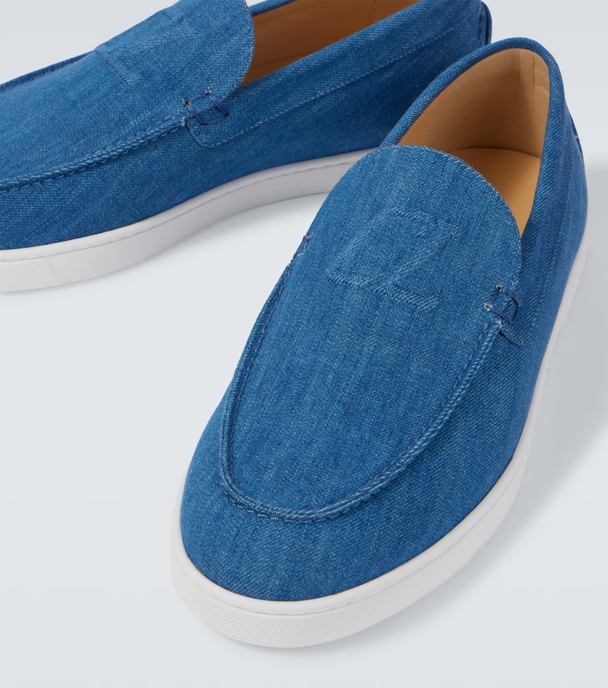 Upper: fabric. Lining: leather. Sole: rubber insole and sole. Toe shape: almond toe. Made in Italy. Includes: shoe box, dust bags. Designer color name: Blue. Shop Christian Louboutin Loafers for men and other designer shoes now.