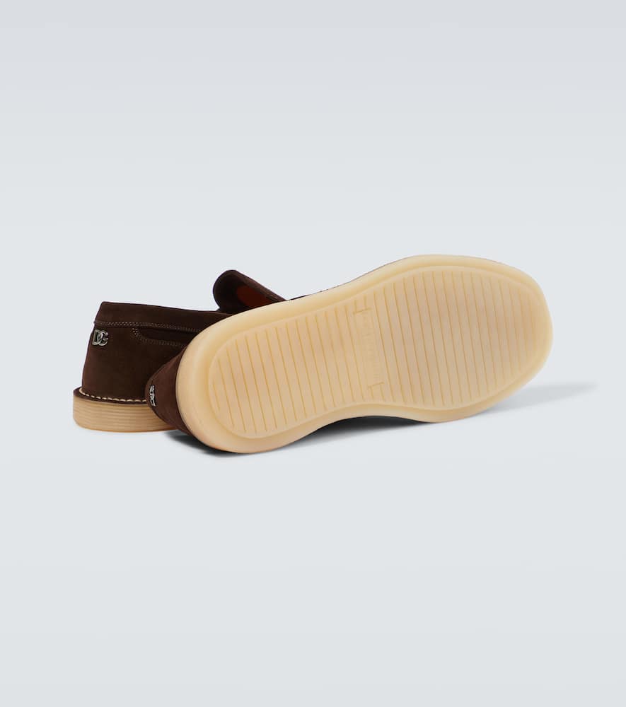 Upper: suede. Lining: leather. Sole: leather insole, rubber sole. Toe shape: round toe. Made in Italy. Includes: shoe box, dust bag. Designer color name: Ebano. Shop Dolce&Gabbana Loafers for men and other designer shoes now.