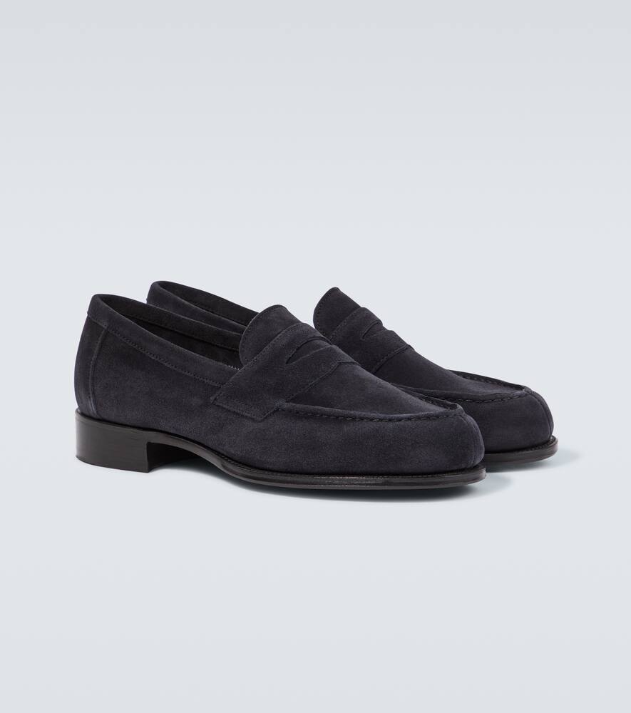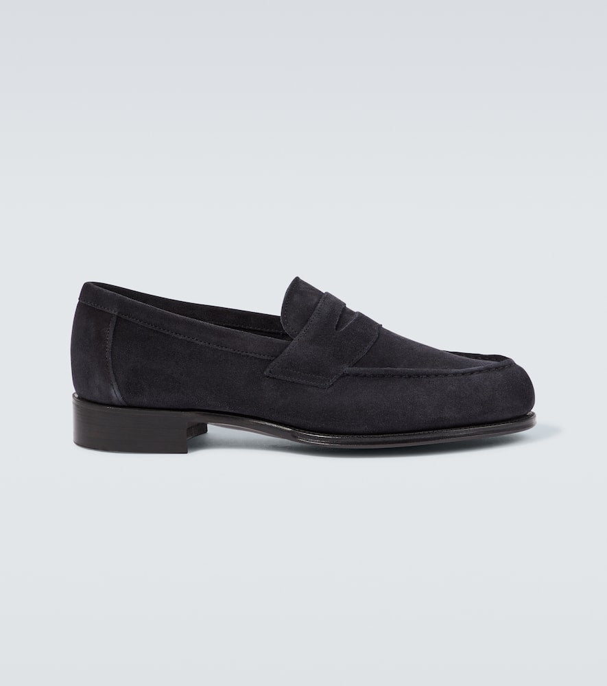 Upper: calf leather. Lining: leather. Sole: leather insole and sole. Toe shape: round toe. Made in the UK. Includes: shoe box, dust bag. Designer color name: Navy 830. Shop George Cleverley Loafers for men and other designer shoes now.