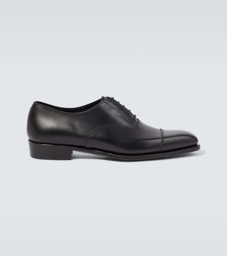 Upper: leather. Lining: leather. Sole: leather insole and sole. Toe shape: almond toe. Made in the UK. Includes: shoe box, dust bags. Designer color name: Black. Shop George Cleverley Oxford for men and other designer shoes now.