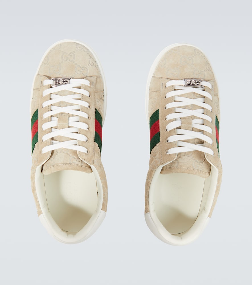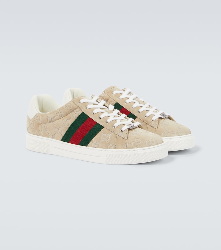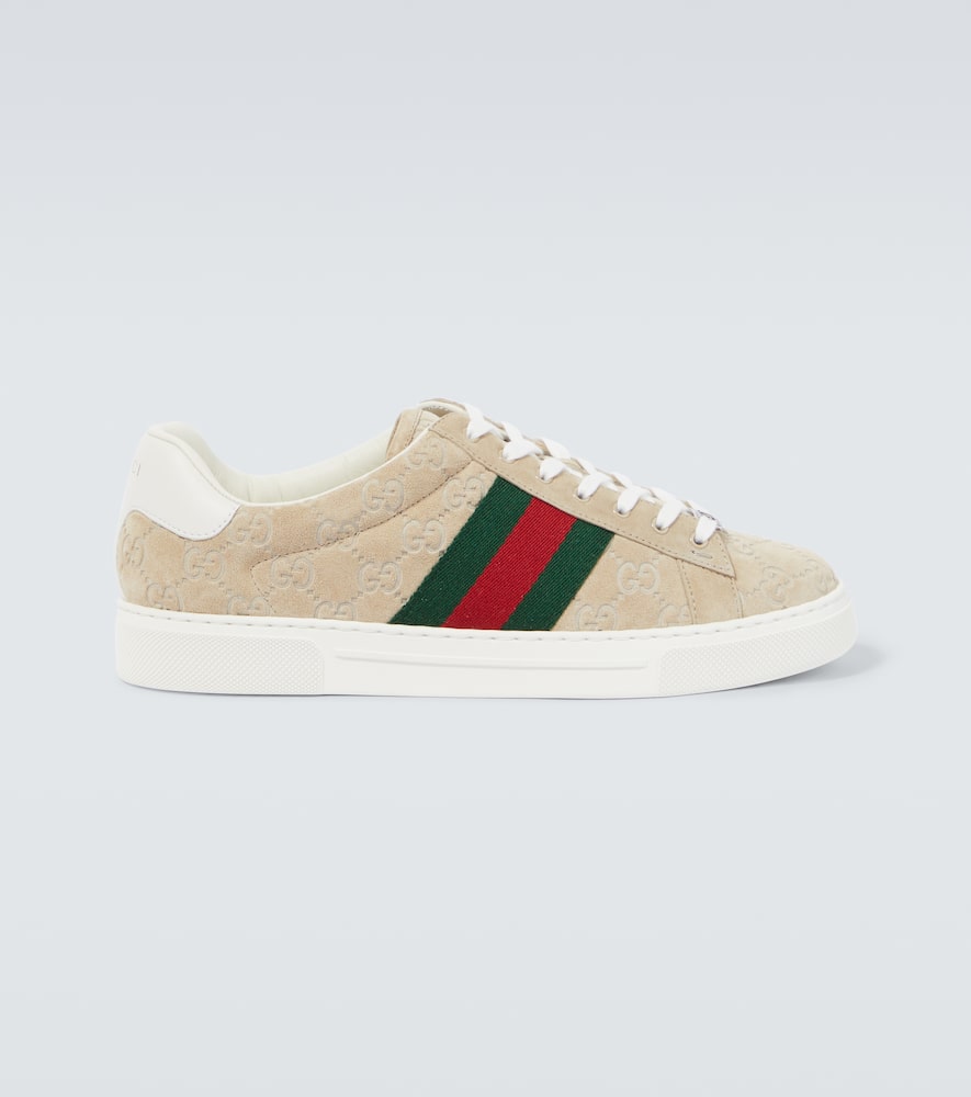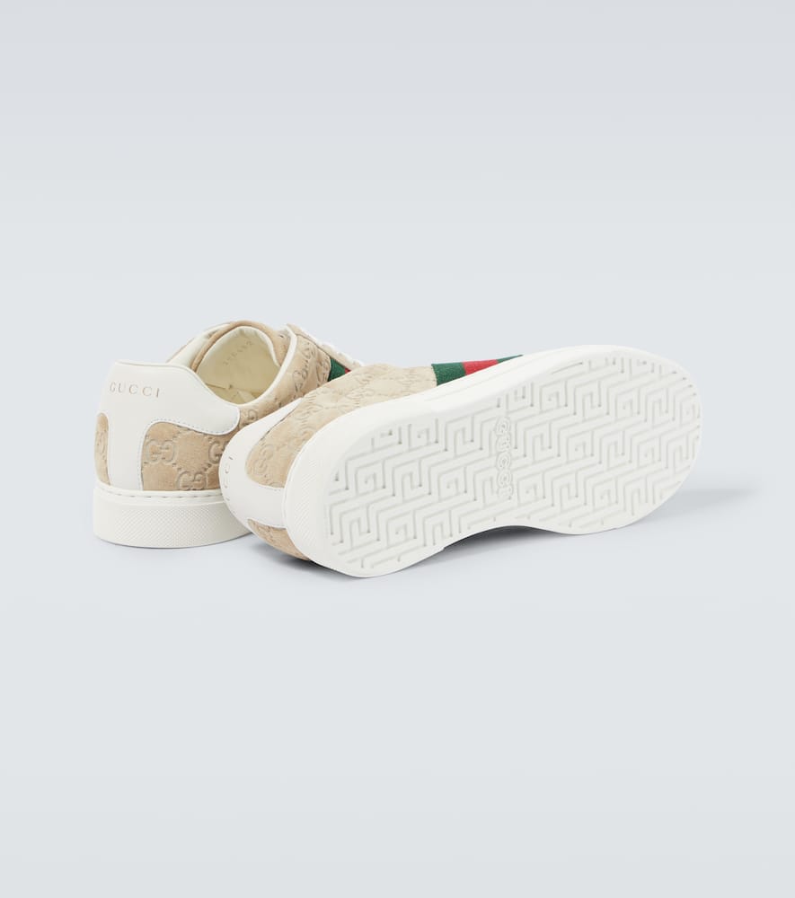 Upper: calf leather. Lining: fabric. Sole: leather insole, rubber sole. Toe shape: round toe. Made in Italy. Includes: shoe box, dust bags. Designer color name: Oatmeal/Oat/VRV/GR.W. Closure: lace-up. Shop Gucci Low-Top Sneakers for men and other designer shoes now.