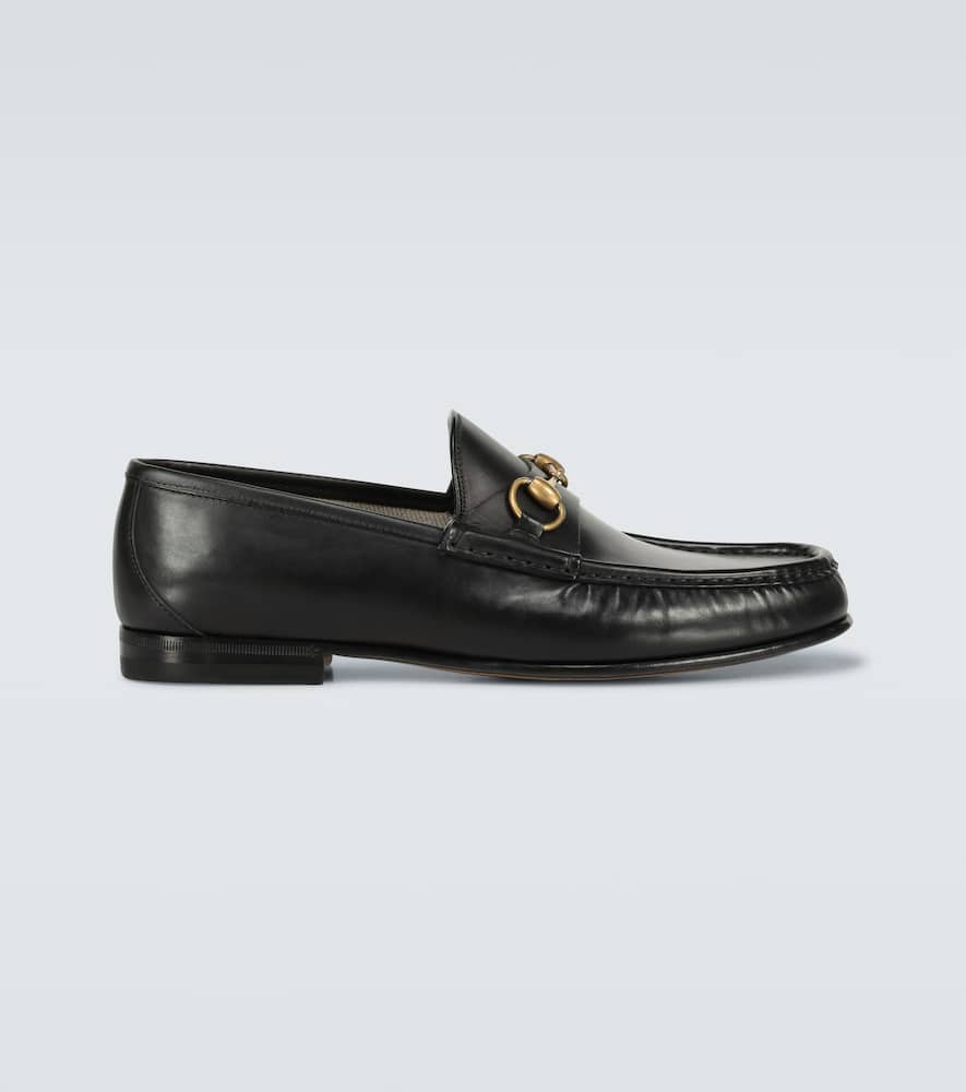Upper: calf leather. Lining: leather. Sole: leather insole and sole. Toe shape: round toe. Made in Italy. Includes: shoe box. Designer color name: Black. Hardware color: gold. Shop Gucci Loafers for men and other designer shoes now.