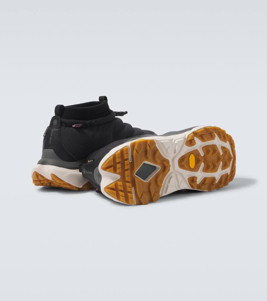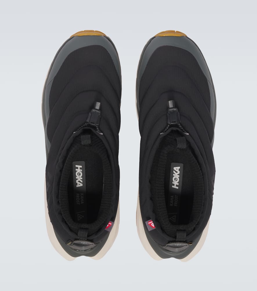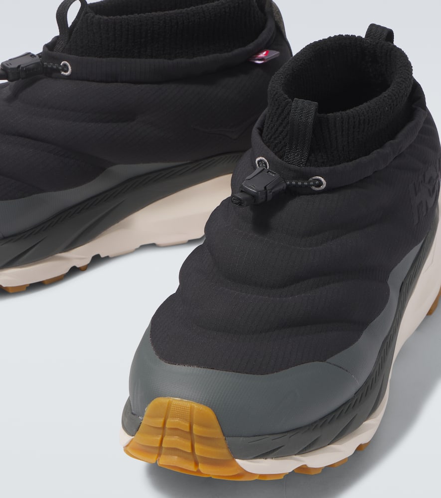 Upper: fabric. Lining: fabric. Sole: fabric insole, rubber sole. Toe shape: almond toe. Made in Vietnam. Includes: shoe box. Designer color name: BLACK / OUTER ORBIT. Closure: drawstring. Shop Hoka One One Sports Sneakers for men and other designer shoes now.