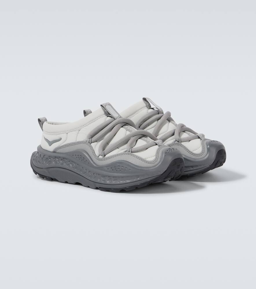 Upper: fabric. Lining: fabric. Sole: fabric insole, rubber sole. Toe shape: round toe. Made in Vietnam. Includes: shoe box. Designer color name: Stardust / Satellite Grey. Shop Hoka One One Sports Sneakers for men and other designer shoes now.