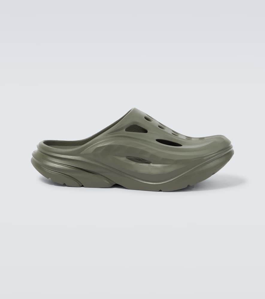 Upper: rubber. Lining: rubber. Sole: rubber insole and sole. Toe shape: round toe. Made in Vietnam. Includes: shoe box. Designer color name: Slate/Slate. Shop Hoka One One Sandals & Slides for men and other designer shoes now.