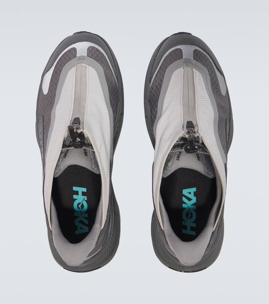 Upper: fabric. Lining: fabric. Sole: fabric insole, rubber sole. Toe shape: almond toe. Made in Vietnam. Includes: shoe box. Designer color name: Stardust/ Satellite Grey. Closure: elasticated strap, zipped fastening. Shop Hoka One One Sports Sneakers for men and other designer shoes now.