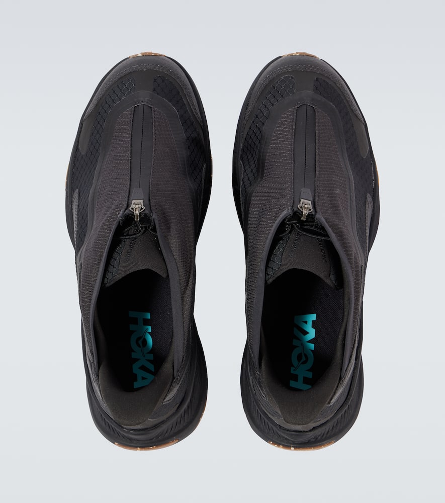 Upper: fabric. Lining: fabric. Sole: fabric insole, rubber sole. Toe shape: round toe. Made in Vietnam. Includes: shoe box. Designer color name: Carbon Black/ Black. Closure: lace-up, zipped fastening. Shop Hoka One One Designer Sneakers for men and other designer shoes now.