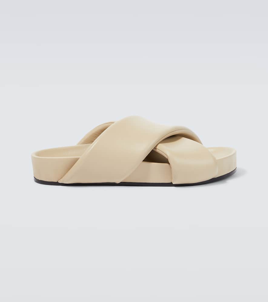 Lining: leather. Sole: leather insole and sole. Toe shape: almond open toe. Upper: leather. Comes with a box, Comes with dust bag. Designer color name: Dark Sand. Made in Italy. Shop Jil Sander Sandals & Slides for men and other designer shoes now.