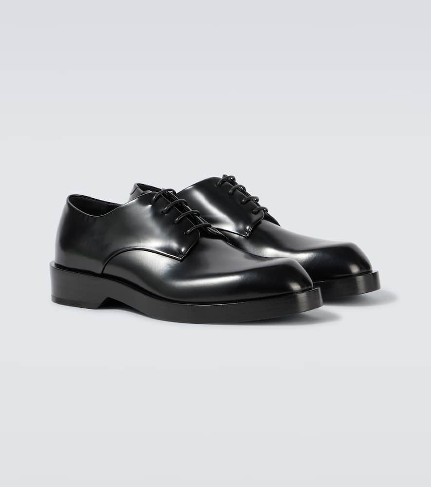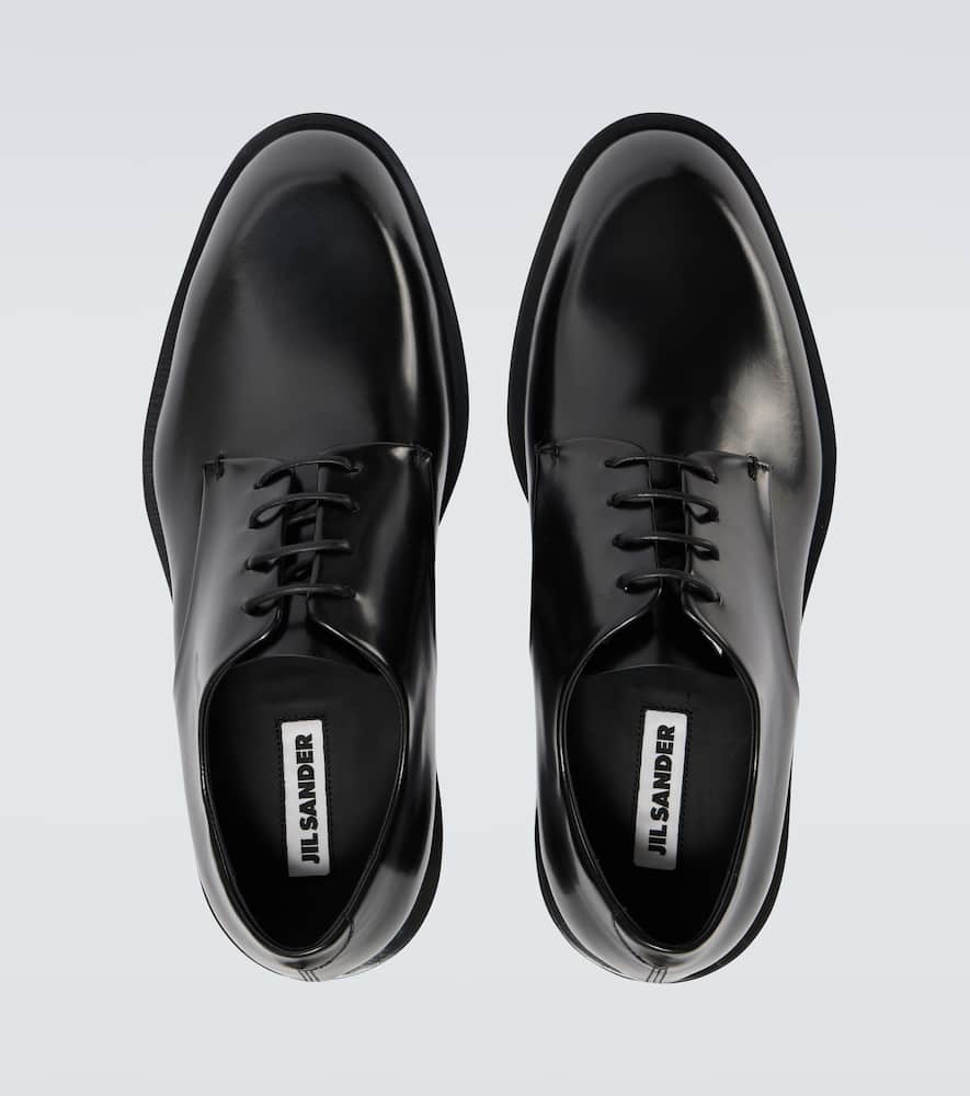 Upper: leather. Lining: leather. Sole: leather insole, rubber sole. Toe shape: almond toe. Made in Italy. Includes: shoe box, dust bag, extra laces. Designer color name: Black. Closure: lace-up. Shop Jil Sander Derby for men and other designer shoes now.