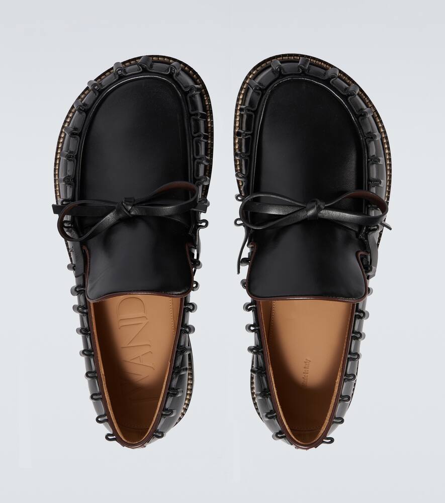 Upper: leather. Lining: leather. Sole: leather insole, rubber sole. Toe shape: almond toe. Made in Italy. Includes: shoe box, dust bag. Designer color name: Black. Shop JW Anderson Loafers for men and other designer shoes now.