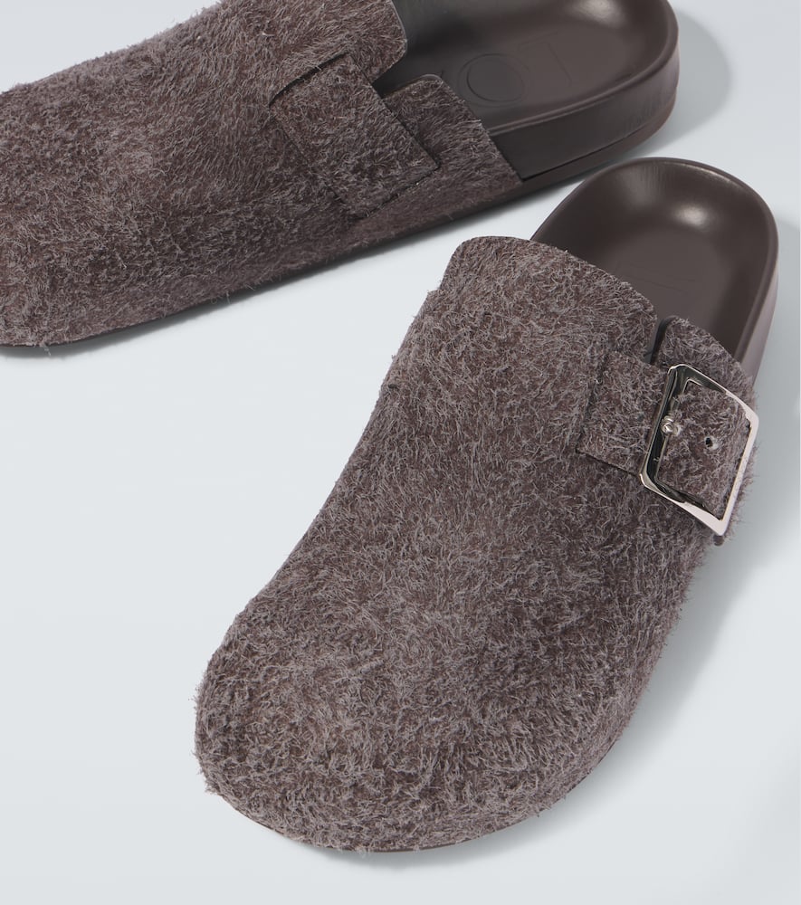 Upper: leather (suede). Lining: leather. Sole: leather insole, rubber sole. Toe shape: round toe. Made in Italy. Includes: shoe box, dust bags. Designer color name: Dark Brown. Hardware color: silver. Shop Loewe Slippers for men and other designer shoes now.