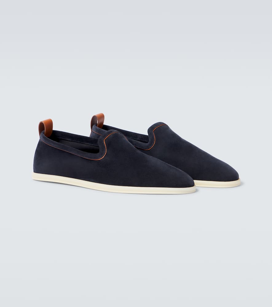 Upper: leather. Lining: leather. Sole: leather insole, rubber sole. Toe shape: almond toe. Made in Italy. Includes: shoe box, dust bags. Designer color name: Blue Navy. Shop Loro Piana Loafers for men and other designer shoes now.