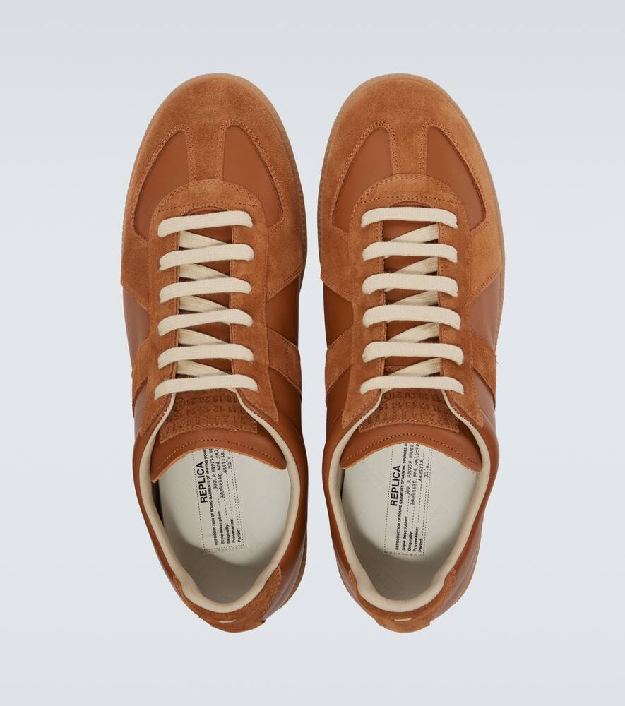 Upper: leather. Lining: fabric. Sole: leather insole, rubber sole. Toe shape: almond toe. Made in Italy. Includes: shoe box, dust bags. Designer color name: Light Brown. Trim: suede. Closure: lace-up. Shop Maison Margiela Low-Top Sneakers for men and other designer shoes now.