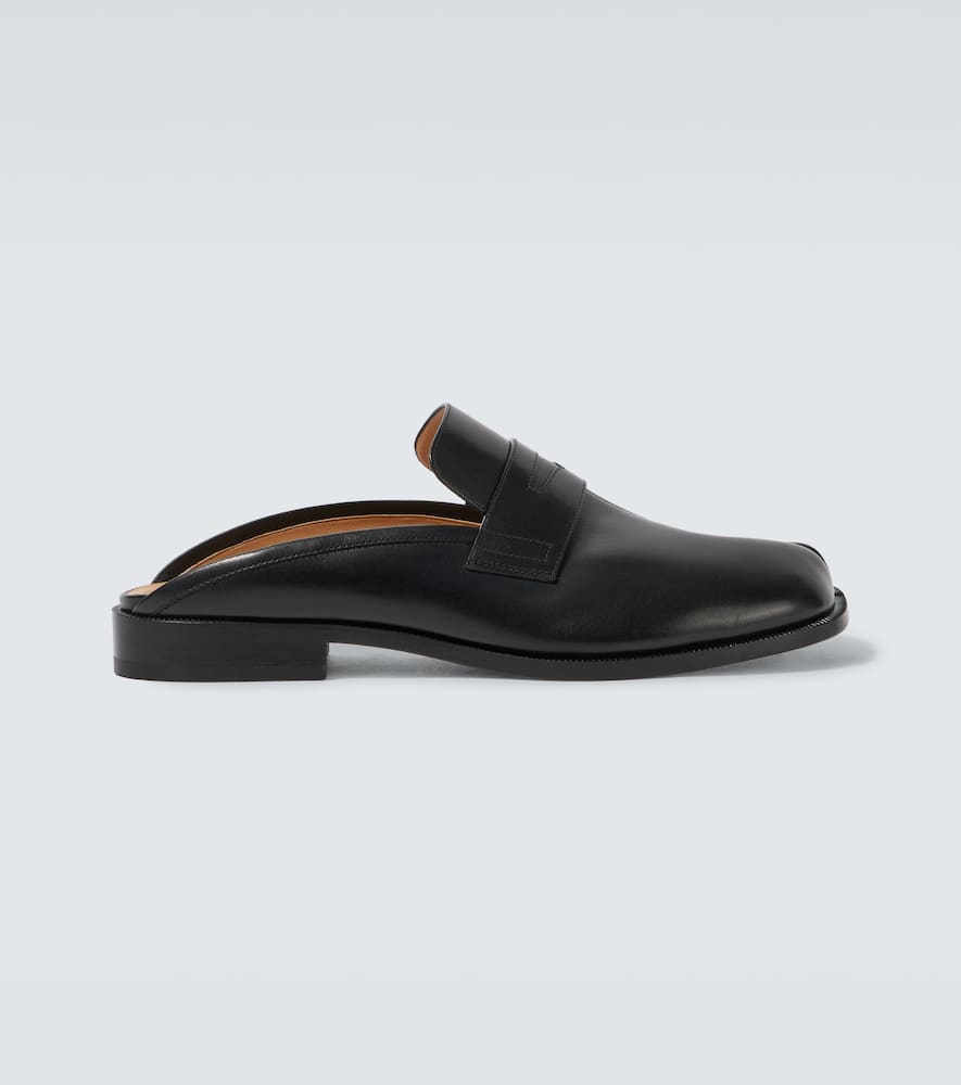 Upper: leather. Lining: leather. Sole: leather insole and sole. Toe shape: split toe. Made in Italy. Includes: shoe box. Designer color name: Black. Shop Maison Margiela Slippers for men and other designer shoes now.
