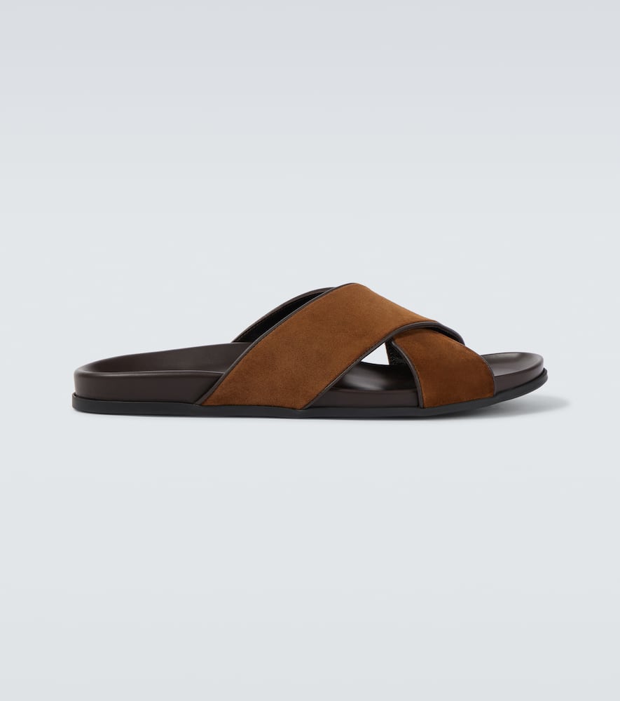 Upper: leather. Lining: leather. Sole: leather insole, rubber sole. Toe shape: round open toe. Made in Italy. Includes: dust bag, shoe box. Designer color name: 2079 Dbrw. Shop Manolo Blahnik Sandals & Slides for men and other designer shoes now.
