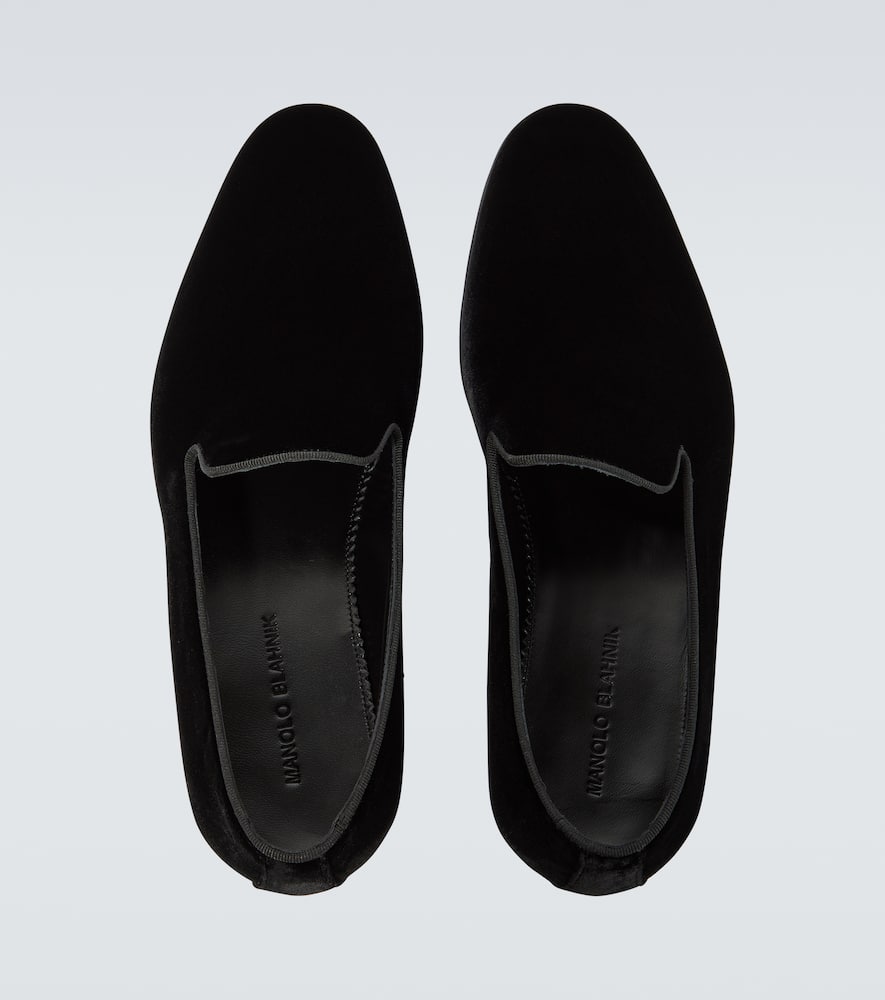 Upper: fabric. Lining: leather. Sole: leather insole and sole. Toe shape: round toe. Made in Italy. Designer color name: 0015 Blck. Comes with dust bags. Comes with a box. Shop Manolo Blahnik Loafers for men and other designer shoes now.