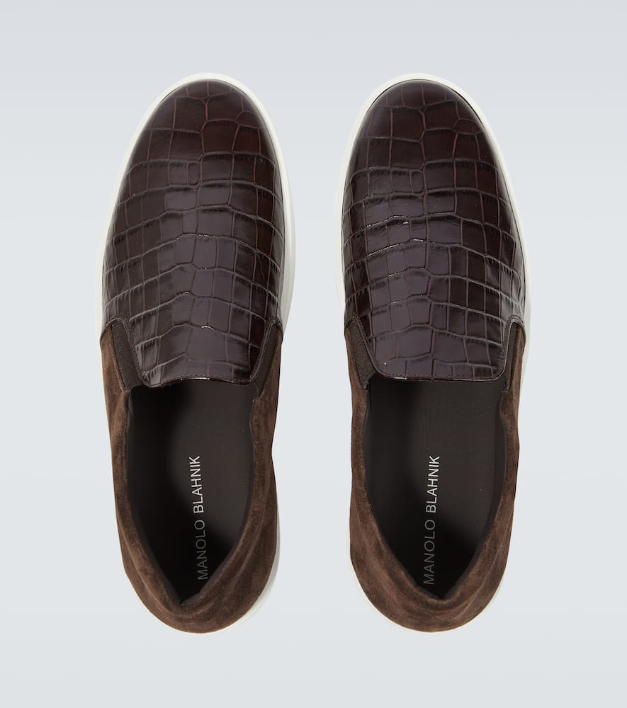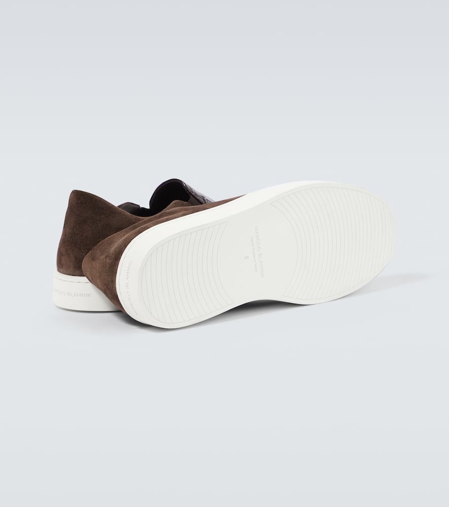 Upper: calf leather. Lining: leather. Sole: leather insole, rubber sole. Toe shape: round toe. Made in Italy. Includes: shoe box, dust bag. Designer color name: 2029 Dbrw. Closure: elasticated sides. Shop Manolo Blahnik Loafers for men and other designer shoes now.