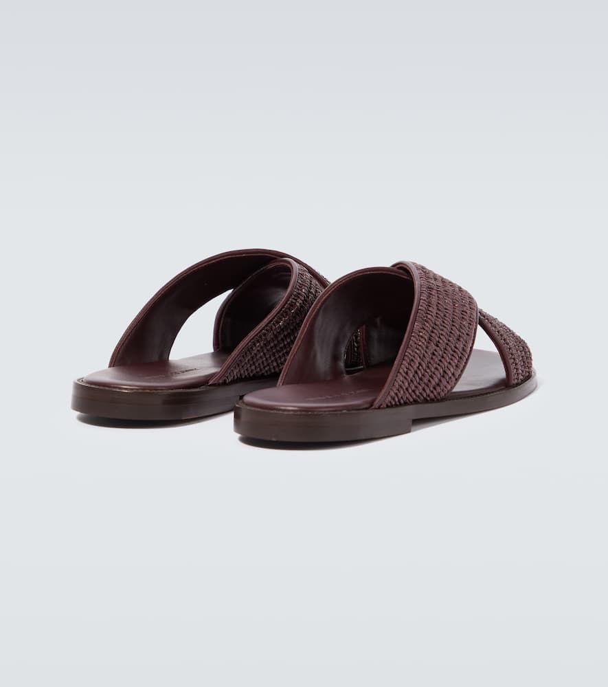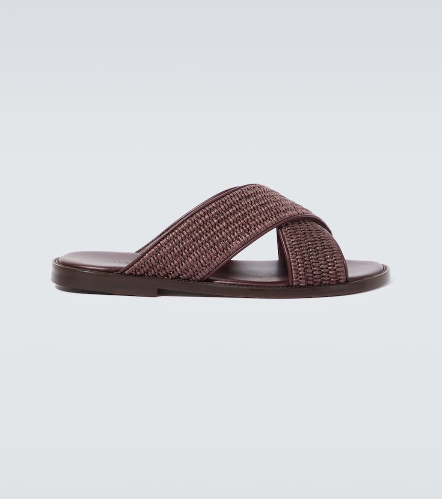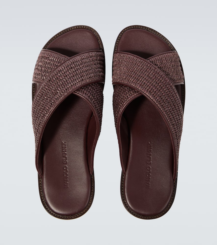 Manolo Blahnik Otawi leather-trimmed raffia sandals