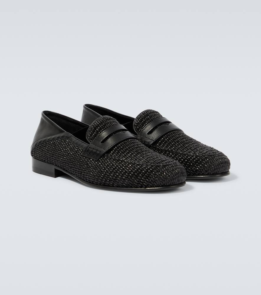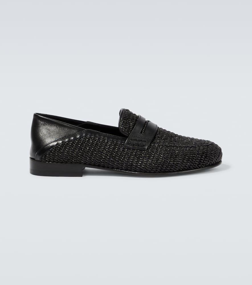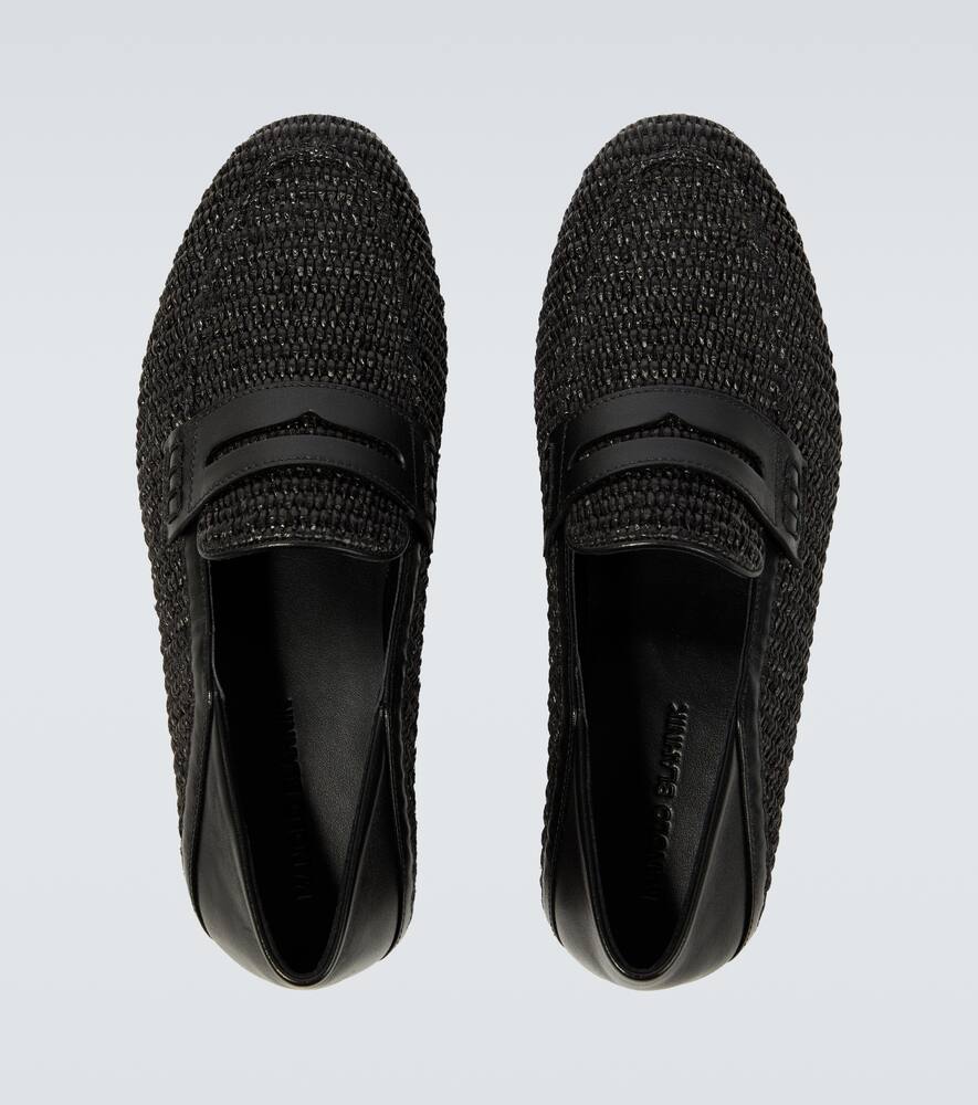 Manolo Blahnik Padstow raffia and leather loafers