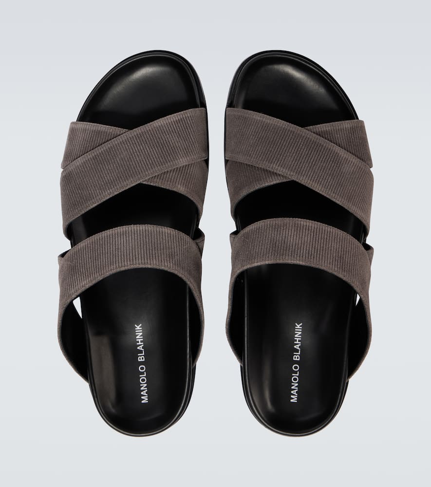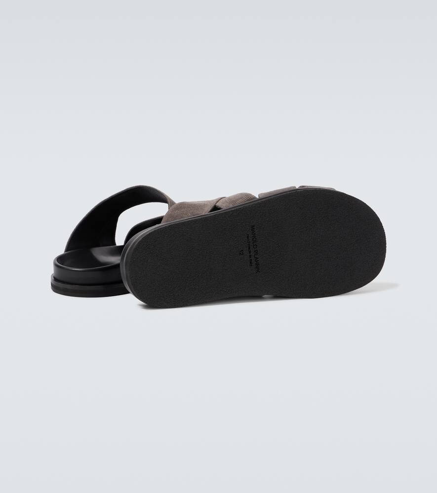 Upper: leather. Lining: leather. Sole: leather insole, rubber sole. Toe shape: round open toe. Made in Italy. Includes: shoe box, dust bag. Designer color name: 906v Ypri. Shop Manolo Blahnik Sandals & Slides for men and other designer shoes now.