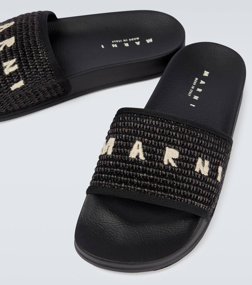 Upper: raffia, rubber. Toe shape: round toe. Lining: fabric. Comes with a box. Sole: rubber insole and sole. Designer color name: Black. Made in Italy. Comes with dust bag. Shop Marni Sandals & Slides for men and other designer shoes now.