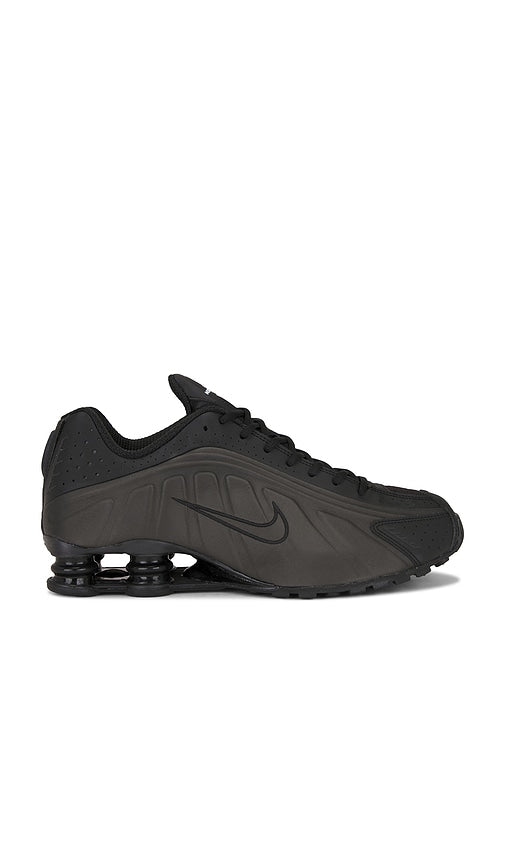 Faux leather and textile upper with rubber sole. Lace-up front. Nike Shox technology features resilient, flexible columns that compress and regain shape for outstanding cushioning. Nike Shox columns in the heel distribute weight to maximize comfort. Modified, circular Waffle outsole offers great traction. Laser perforations throughout provide ventilation. NIKR-MZ1033. HQ1988-001. Centered around humanity and athletic innovations, Nike believes that if you have a body, you are an athlete. From footwear to an incredible variety of clothing, Nike is about enhancing performance while looking and feeling your best. Many of their shoe styles have become rare collector's items because of their limited quantity and unique, yet classic design. Their-performance focused technologies have revolutionized athletic wear, while their exclusive fabrics such as Dri-Fit, AeroReact, and Storm-Fit highlight both function and aesthetics. Beyond apparel, Nike invests in the power of people, planet, and play with practices that seek to better serve the environment and support women in the workforce.