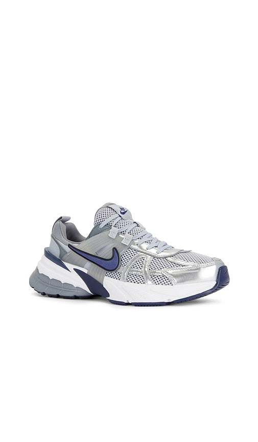 Mesh and textile upper with rubber sole. Made in Vietnam. Lace-up front. Nike Swoosh at sides. Lightly padded tongue with Nike logo patch. Padded collar with grosgrain back pull. Metallic silver overlays throughout. NIKR-MZ880. HJ4497-002. Centered around humanity and athletic innovations, Nike believes that if you have a body, you are an athlete. From footwear to an incredible variety of clothing, Nike is about enhancing performance while looking and feeling your best. Many of their shoe styles have become rare collector's items because of their limited quantity and unique, yet classic design. Their-performance focused technologies have revolutionized athletic wear, while their exclusive fabrics such as Dri-Fit, AeroReact, and Storm-Fit highlight both function and aesthetics. Beyond apparel, Nike invests in the power of people, planet, and play with practices that seek to better serve the environment and support women in the workforce.