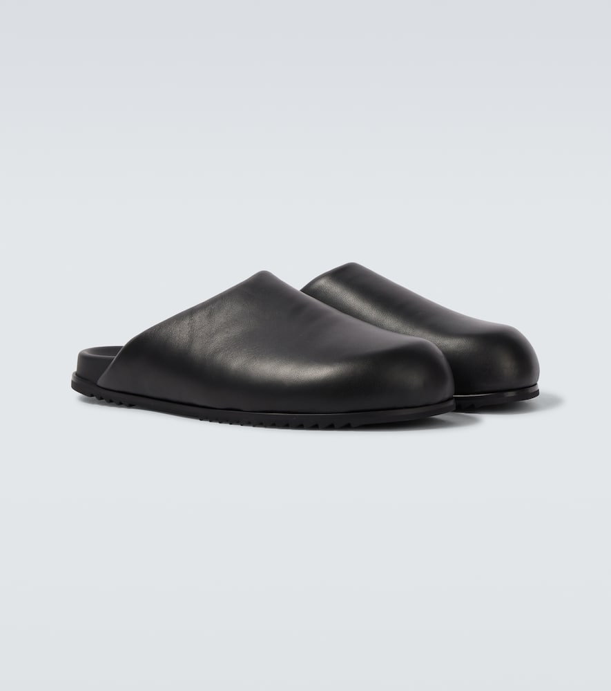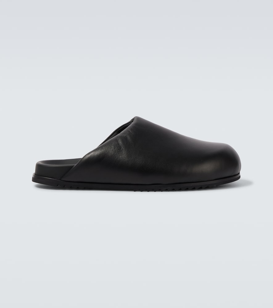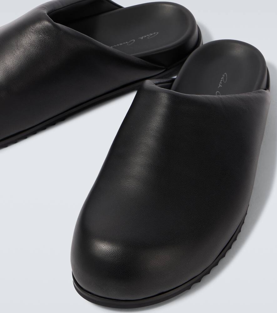 Upper: leather. Lining: leather. Sole: leather insole, rubber sole. Toe shape: round toe. Made in Italy. Includes: shoe box. Designer color name: Black. Shop Rick Owens Slippers for men and other designer shoes now.
