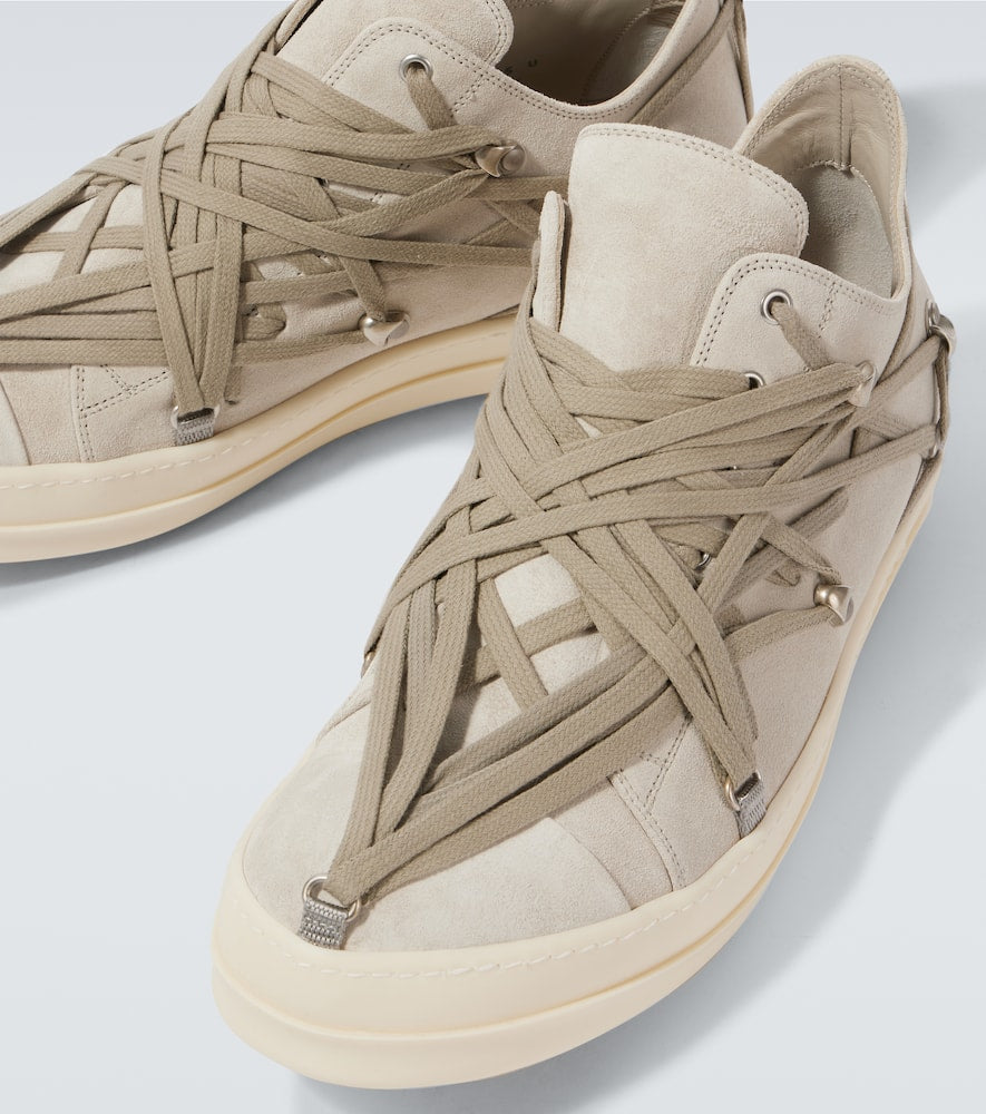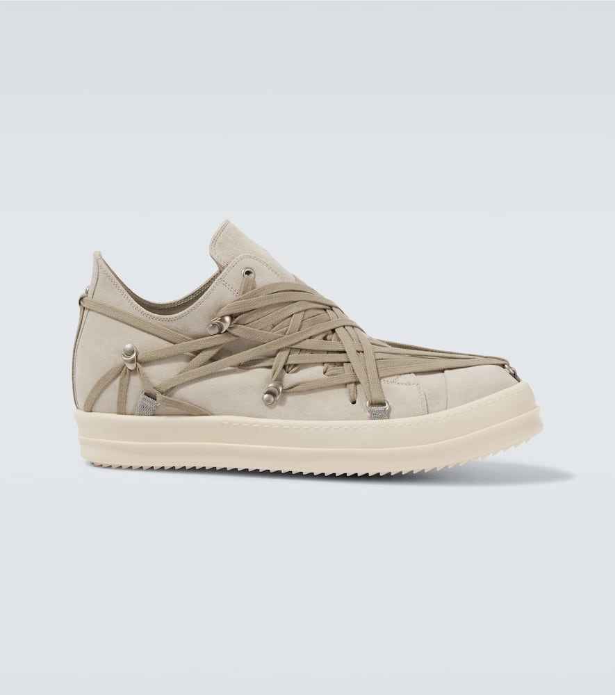 Upper: leather. Lining: leather. Sole: leather insole, rubber sole. Toe shape: round toe. Made in Italy. Includes: shoe box, dust bag. Designer color name: Dinge/Milk. Closure: lace-up. Shop Rick Owens Designer Sneakers for men and other designer shoes now.