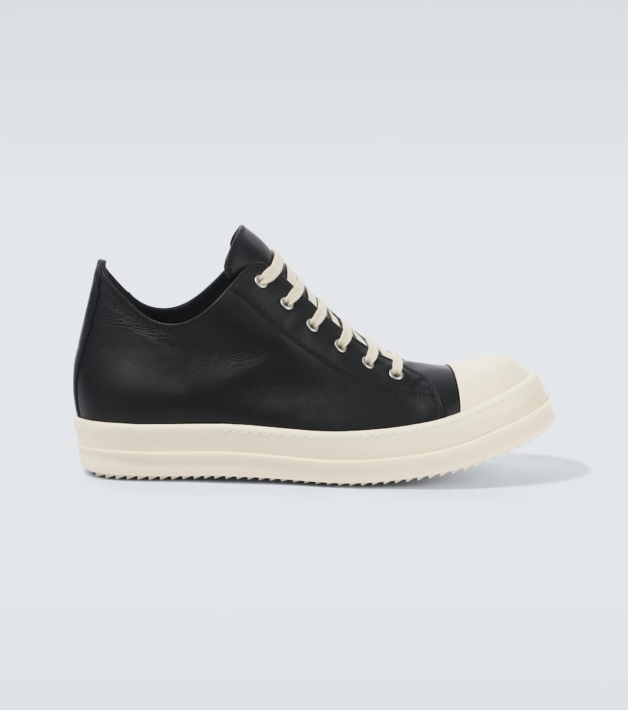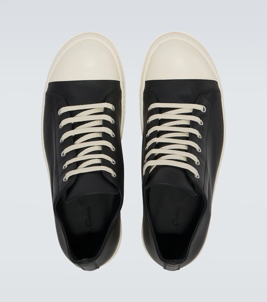 Upper: leather. Lining: leather. Sole: leather insole, rubber sole. Toe shape: round toe. Made in Italy. Includes: shoe box, extra laces. Designer color name: Black/Milk/Milk. Shop Rick Owens Low-Top Sneakers for men and other designer shoes now.