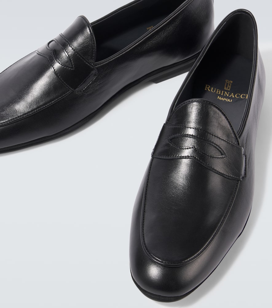Upper: leather. Lining: leather. Sole: leather insole and sole. Toe shape: round toe. Made in Italy. Includes: shoe box. Designer color name: Black. Shop Rubinacci Loafers for men and other designer shoes now.