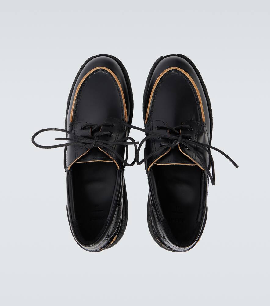 Upper: leather. Lining: leather. Sole: leather insole, rubber sole. Toe shape: almond toe. Made in Japan. Includes: shoe box, dust bag. Designer color name: Black. Closure: lace-up. Shop Sacai Loafers for men and other designer shoes now.