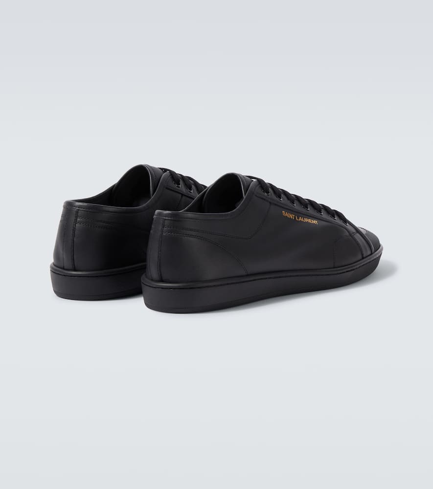 Upper: leather. Lining: leather. Sole: leather insole, rubber sole. Toe shape: almond toe. Made in Italy. Includes: shoe box, dust bags. Designer color name: Noir. Closure: lace-up. Shop Saint Laurent Low-Top Sneakers for men and other designer shoes now.